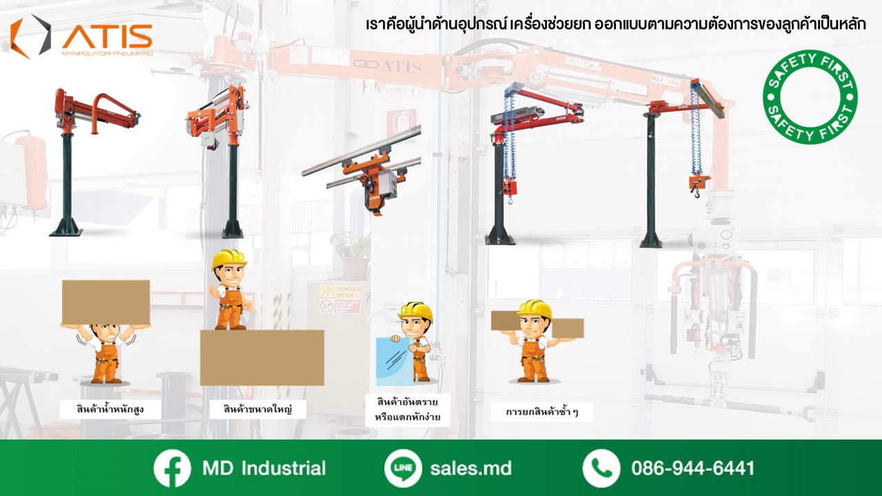 จะดีกว่าไหม ? หากโรงงานอุตสาหกรรมใช้นวัตกรรมเพื่อเป็นตัวช่วยในการยกหรือเคลื่อนย้ายสินค้าแทนแรงงานคน นอกจากจะลดต้นทุนของค่าจ้างแล้ว ตัวเครื่องยังสามารถใช้งานได้อย่างยาวนาน ควบคุมได้ง่าย คุ้มค่าแก่การลงทุน โดยอุปกรณ์ช่วยยก ATIS สามารถออกแบบตามความต้องการของลูกค้าเป็นหลัก