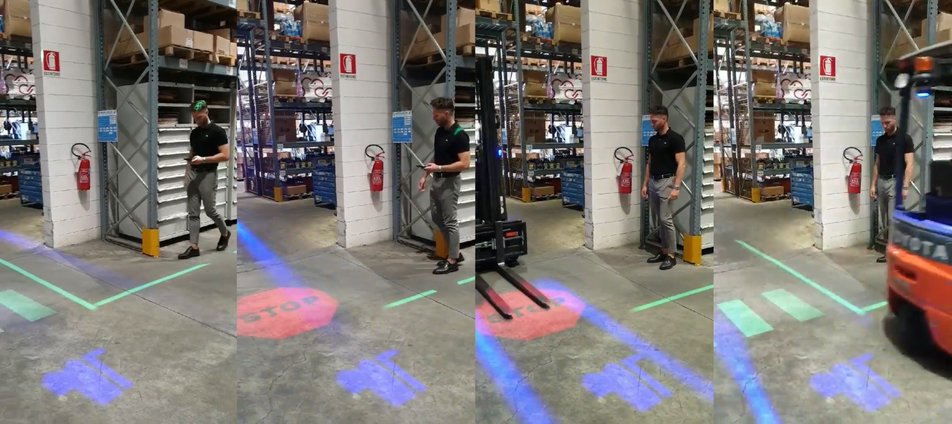 ตัวอุปกรณ์สามารถต่อกับระบบอื่นๆได้ เช่น ประตู speed door เพื่อให้ฉายรูปทางม้าลายตอนประตูปิดและไม่มีความเสี่ยง แต่จะฉายรูปสัญลักษณ์เตือนเมื่อประตูเปิดและมีรถโฟล์คลิฟท์วิ่งผ่าน